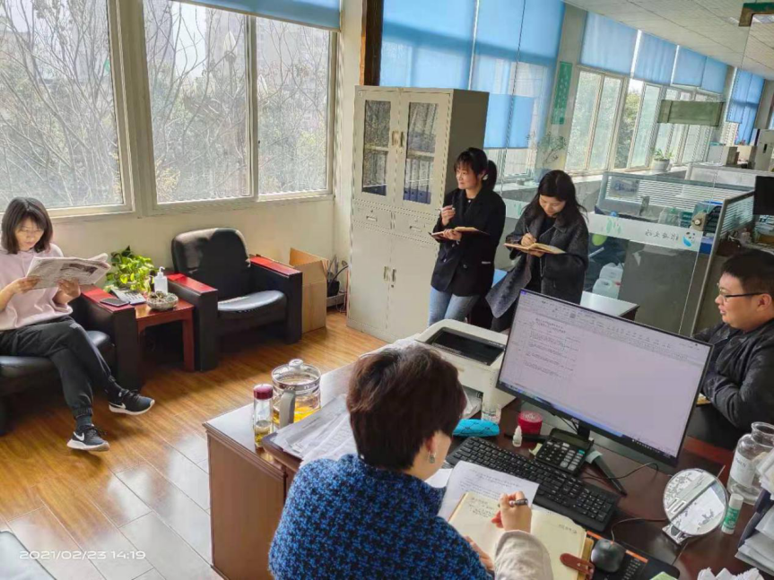 春節(jié)假期后的第二天起,綜合辦全體同志每日2:10準(zhǔn)時(shí)在辦公室集合,利用班前20分鐘學(xué)習(xí)《人民日報(bào)》《求是》《雅安日報(bào)》《政府工作通報(bào)》等報(bào)刊和內(nèi)部讀物。部門員工輪流當(dāng)老師,分別勾選出自己認(rèn)為具有學(xué)習(xí)價(jià)值的報(bào)道或公文,為部門同事認(rèn)真進(jìn)行解讀,其余同事跟讀學(xué)習(xí)。