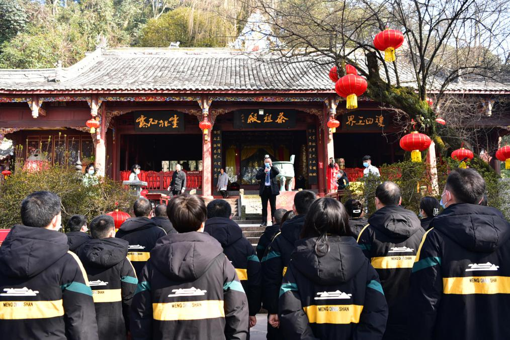 三、推廣民俗,傳統(tǒng)文化添氛圍。正月初一,為感恩茶祖吳理真為人類(lèi)做的貢獻(xiàn),蒙頂山景區(qū)舉行了開(kāi)年第一場(chǎng)“拜茶祖·祈大?!辈枳婕腊輧x式,誦讀祭文,敬拜茶祖,行作揖禮,敬獻(xiàn)蒙頂皇茶,去掉昔日進(jìn)香的流程,蒙頂山景區(qū)也將此次的“茶祖祭拜”儀式感做到十足,令不少游客為之駐足。為營(yíng)造節(jié)日氛圍,蒙頂山花間堂·茶馬司酒店還開(kāi)展了新年剪紙等傳統(tǒng)非遺活動(dòng),以及古風(fēng)發(fā)簪制作、陶罐涂色、毛氈掛件制作活動(dòng),受到入住游客的歡迎。