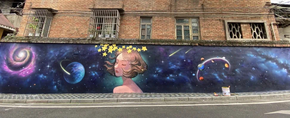 二是發(fā)揮創(chuàng)意設計,扮靚城市色彩。文旅集團墻繪善于創(chuàng)意設計矩陣搭建,作為城市形象提升的助推劑。把大熊貓城市吉祥物IP與價值觀念和文化信息意識標語墻繪相結合,讓“雅雅”“安安”成為精神文明建設宣傳小能手;彩繪“大魚海棠”“宮崎駿”動漫IP設計更新社區(qū)墻面,讓老舊小區(qū)成了藝術街區(qū);“金光夾金山”“蒙頂山采茶”“達瓦根扎星云”原創(chuàng)風景插畫與國道、省道、隧道墻繪相融,為過境游客提供視覺盛宴;草壩黃金沙灘墻繪采用高飽和度配色,附加趣味打卡陣列裝置,打造全市最大臨江彩繪墻,春節(jié)開放以來吸引6萬人次前往打卡。